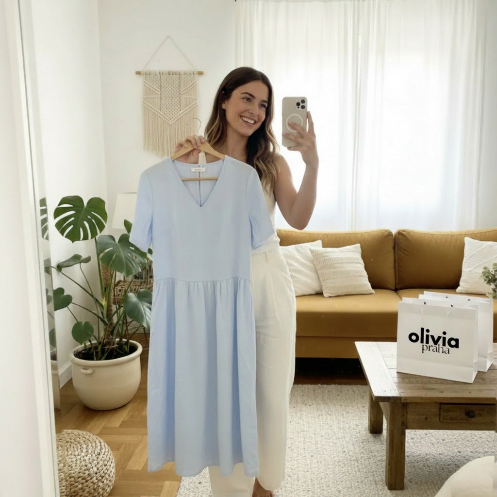 - Round neck: comfortable and classic